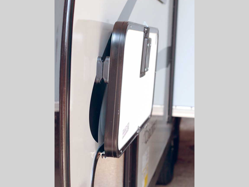 The modern interiors feature Sorrento cabinetry and Shaker cabinet door frames, seamless edge countertops and Congoleum residential flooring which are all complimented by the functional use of each space. Each model also includes a full bath and a functional kitchen making your camping adventures comfortable and easy. Outside, you'll find a power tongue jack, Solid Steps, a hot and cold exterior shower, plus many more conveniences. There is also a 400 watt solar panel with a 30 amp control charger for off-grid capabilities!