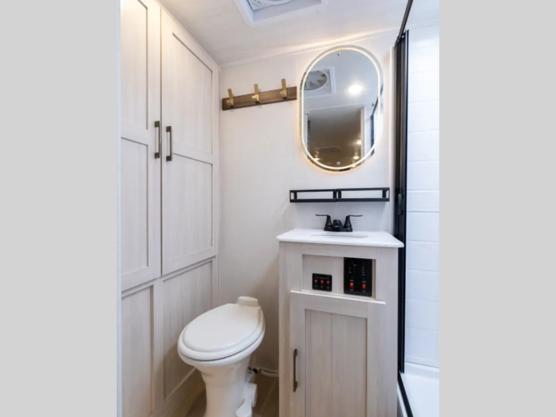 Sleeps 2 Slides 1 Length 27 ft Ext Width 8 ft Ext Height 11 ft 3 in Hitch Weight 655 lbs GVWR 7655 lbs Dry Weight 5843 lbs Cargo Capacity 1812 lbs Fresh Water Capacity 40 gals Grey Water Capacity 40 gals Black Water Capacity 30 gals Available Beds Queen Refrigerator Type 12V Black Glass Refrigerator Size 10 cu ft Cooktop Burners 3 Number of Awnings 1 Water Heater Type Tankless AC BTU 15000 btu TV Info LR HD TV Awning Info 16' Electric w/LED Light Strip Axle Count 1 Shower Type Standard Electrical Service 30 amp Solar Wattage 200 watts Similar Floorplans